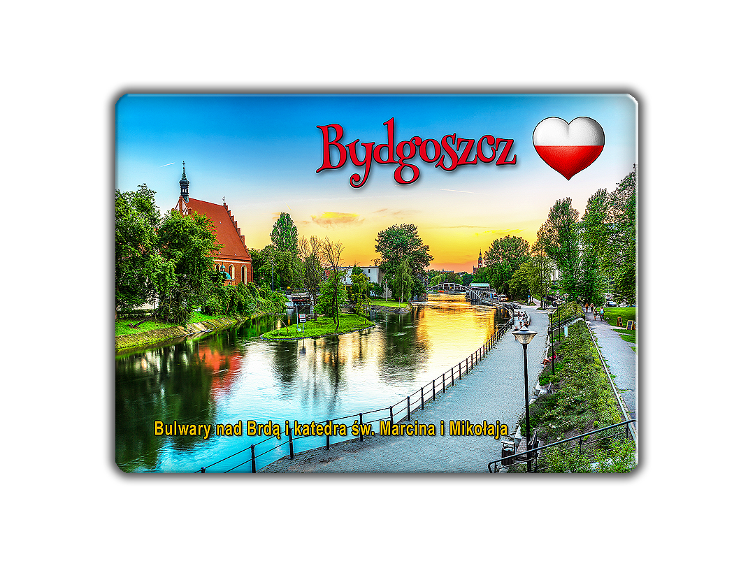 Magnes z widokiem na Bulwary nad Brdą i katedrę św. Marcina i Mikołaja w Bydgoszczy to idealna pamiątka z tego malowniczego miejsca. Bulwary te, stanowiące oazę zieleni i spokoju, są doskonałym miejscem na spacer i odpoczynek, a katedra św. Marcina i Mikołaja, zbudowana w stylu gotyckim, jest jednym z najważniejszych zabytków sakralnych miasta. Ta kompozycja na magnesie oddaje ducha Bydgoszczy, łącząc jej historyczne dziedzictwo z nowoczesnym miejskim życiem.
